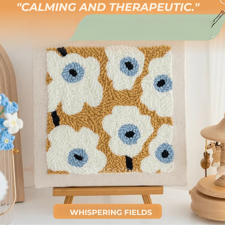 אני מתחילה ב-punch needle, אבל החוט הזה נתן לי ביטחון. הצבעים נראים מאוד טוב על הבד.