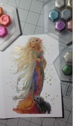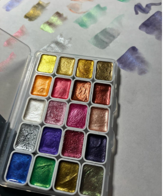 Ano, ľahko sa miešajú s klasickými akvarelmi na vytvorenie perleťových odleskov.